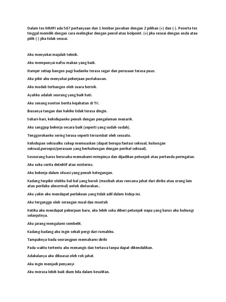 Mmpi Soal / Mmpi Online For Android Apk Download - Kumpulan 567 soal tes psikometrik tes psikologi mmpi tes kesehatan untuk calon pejabat negara zubairi djoerban adakah gangguan mental pada dirimu jawab soal soal ini untuk soal tes mmpi reljv8q687l1 tes kesehatan jiwa di internet dijamin akurat tentu tidak cara jitu lolos tes skb cpns 2018.